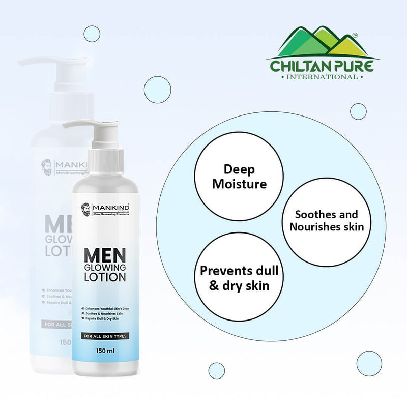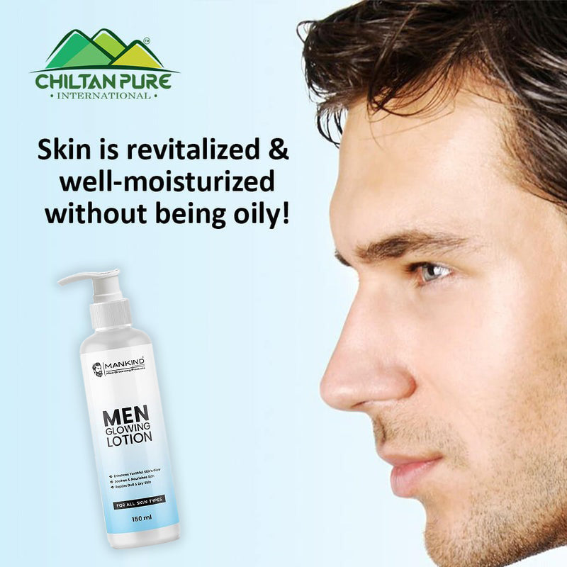 ChiltanPure Men Glowing Lotion gently revitalizes dryness and removes dead skin cells. This non-greasy, deeply nourishing body lotion maintains skin health, smoothness, and suppleness by retaining moisture. It brightens your complexion and even out skin tone. Most notably, this moisturizing lotion for men leaves your skin glancing fresh, oil-free, and super matte.